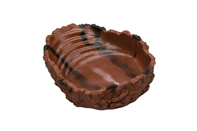Diese praktische Trink- oder Badeschale für Terrarien ist in Felsoptik gearbeitet und hat ein Fassungsvermögen von ca. 2000 ml. Eingearbeitete Stufen ermöglichen es den Tieren die Schale gefahrlos wieder zu verlassen und verhindern ertrinken. Die Schale sollte immer leicht im Boden eingegraben werden um den Terrarientieren einen leichten Einstieg zu bieten.